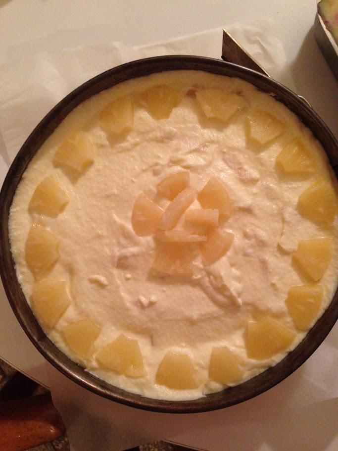 Ako kolač pečete u kalupu od torte, možete ga ukrasiti šlagom i sjeckanim ananasom.