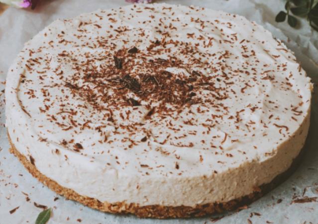 * Za podlogu rastopite 100 g masla i pomiješajte sa 200 g mljevenih keksa. Možete dodati ožičicu kanjele za bolji okus. Utisnite smjesu u kalup od torte.