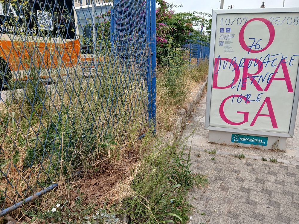 Ako ovih dana prolazite pored Autobusnog kolodvora Dubrovnik prema autobusnoj stanici na Kantafigu vidjeti ćete naraslu travu cca 70 cm oko ograde i nekoliko bogumila!