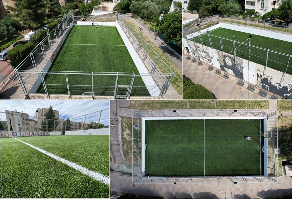 U sklopu radova izvršena je zamjena dotrajale umjetne trave na površini od 325 metara kvadratnih, sanirani su i obojeni zidovi, obnovljena je zaštitna ograda (pletivo), te su postavljene dvije nove bare s pripadajućim mrežicama za mali nogomet.