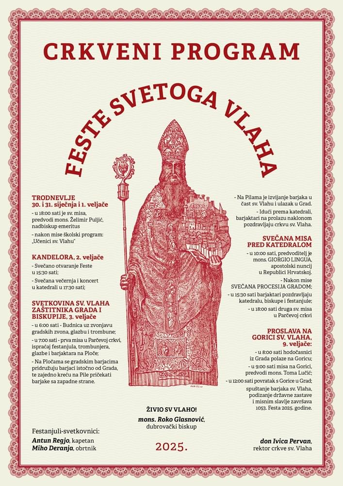 Proglas i Crkveni program Feste sv. Vlaha 2025.