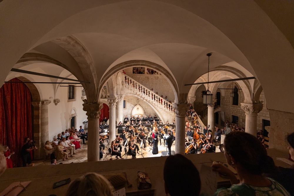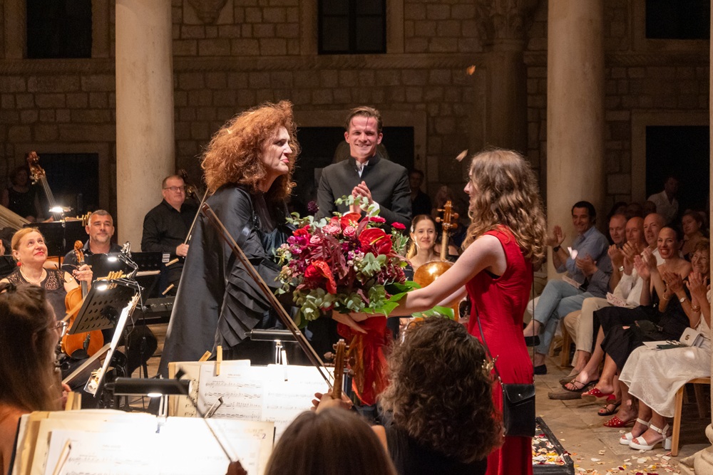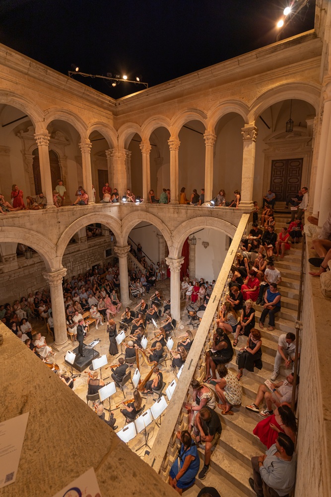 Uz Dubrovački simfonijski orkestar koji ove godine slavi svoju veliku stotu obljetnicu, Dubravka Šeparović Mušović ovom prigodom je proslavila 25 godina od svog prvog nastupa u atriju Kneževa dvora, čime je ova večer poprimila posebnu emotivnu notu. Sjajna je bila i Dubravkina interakcija s publikom kojom je pobrala dodatne simpatije i zasluženi gromoglasni aplauz.