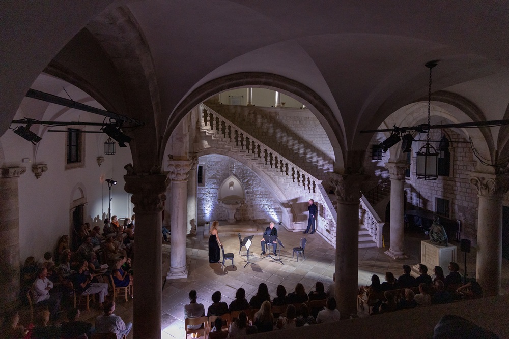 U prepunom atriju Kneževa dvora festivalska publika uživala je sinoć u nezaboravnoj izvedbi glazbeno-scenskog djela Enigma Jarnović koje otkriva intrigantnu priču o životu i tajnama slavnog violinista Ivana Mane Jarnovića. U atmosferi punoj emocijama, poviješću i glazbenom snagom, izvedba je oduševila publiku koja ju je nagradila dugotrajnim pljeskom i ovacijama.