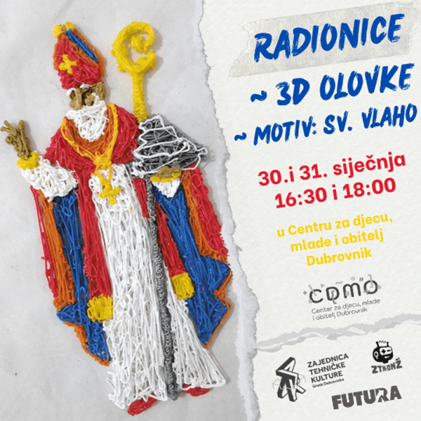 Idući tjedan radionice crtanja 3D olovkama s motivom lika sv. Vlaha