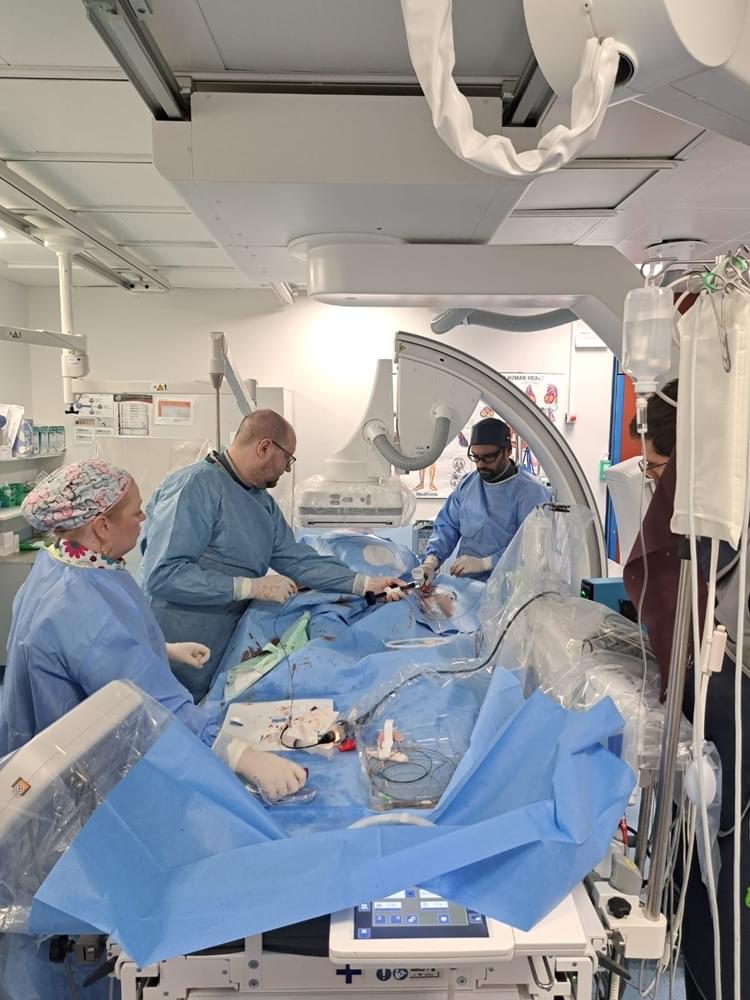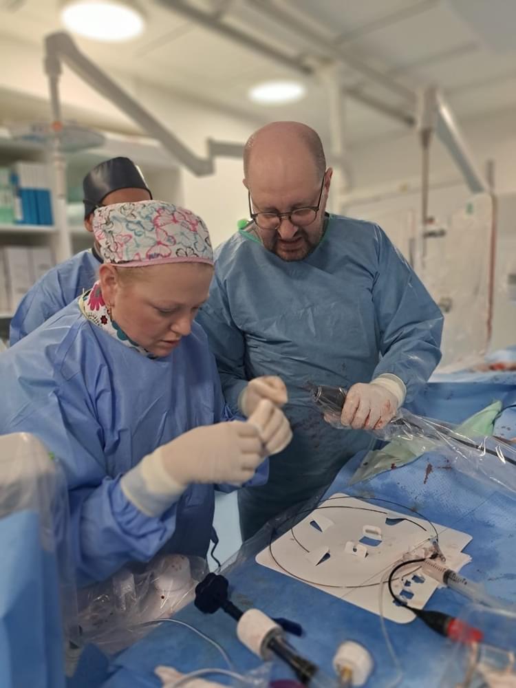 U samu proceduru perkutane endovaskularne intervencije na arterijama noge uz primjenu intravaskularne litotripsije dubrovačke liječnike Perišu Konjuha i Pera Markunovića uputio je doc.dr.sc. Tomislav Krčmar s KBC-a Rijeka.