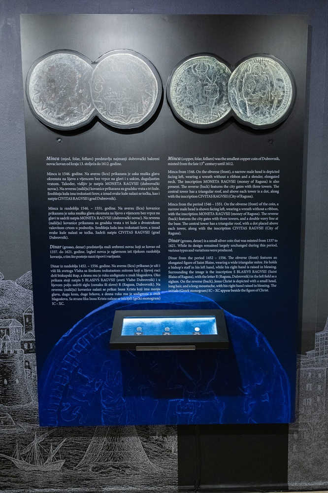 Izložba je predstavila najvrjednije numizmatičke primjerke iz privatne zbirke Cristiana Pambianchija, a riječ je o jedanaest kovanica iz 16. stoljeća, s područja u kojima je Marin Držić živio, boravio i stvarao, i čije su monete okupirale fabulu njegovih djela i sudbinu likova. Uz kovanice koje je nekadašnja Dubrovačka Republika kovala za vrijeme života Marina Držića, u postav su uključene i one s područja renesansne Italije koja je uvelike utjecala na formiranje Držićeva životnoga i književnoga puta.