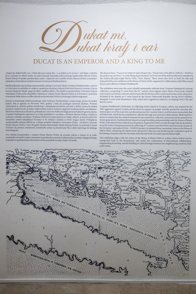 U utorak je u Domu Marina Držića upriličeno otvorenje izložbe ,,Dukat mi, dukat kralj i car“, ostvarene u suradnji s milanskim odvjetnikom i kolekcionarom, ,,vele vrijednim prijateljem od naše kuće“, gospodinom Cristianom Pambianchijem.