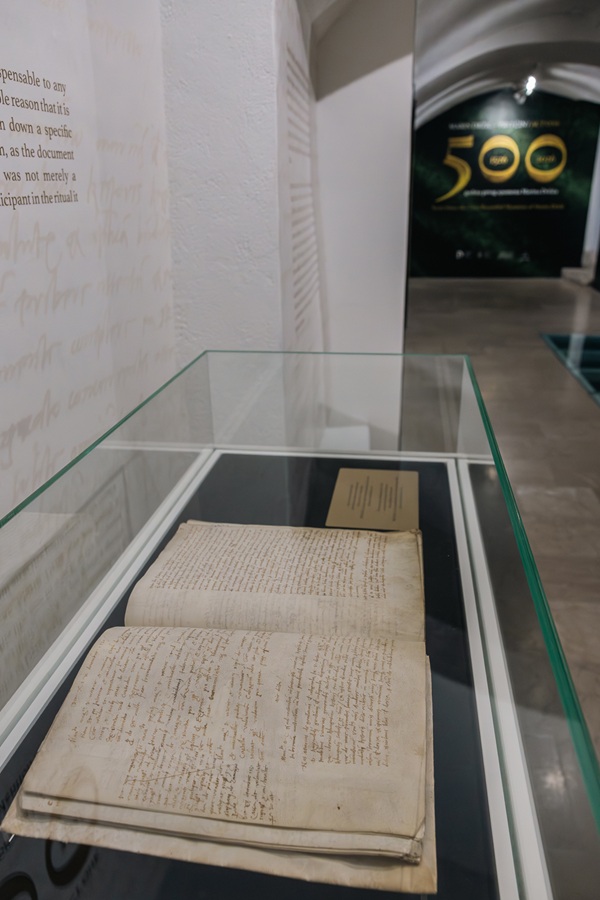 Budući da o Držićevu djetinjstvu i ranoj mladosti nedostaju pouzdani podatci, ključnu ulogu u rekonstrukciji njegova životopisa imaju upravo arhivski dokumenti. Središnje mjesto na izložbi zauzima isprava od 12. travnja 1526. godine kojom se Marin Držić potvrđuje za rektora crkve Svih svetih (Domino). Ovaj dokument, koji se čuva u Državnom arhivu u Dubrovniku, u fondu Razni zapisi državne kancelarije Dubrovnik (Diversa cancellariae), predstavlja istinski „prvi čin“ Držićeva javnog života. Upravo mu je to imenovanje osiguralo financijsku stabilnost i društveni položaj, omogućivši mu da se kasnije posveti književnom i kazališnom radu. Bez tog povijesnog trenutka, pitanje je bismo li danas baštinili remek-djela koja su zadužila ne samo hrvatsku, već i europsku renesansnu književnost.