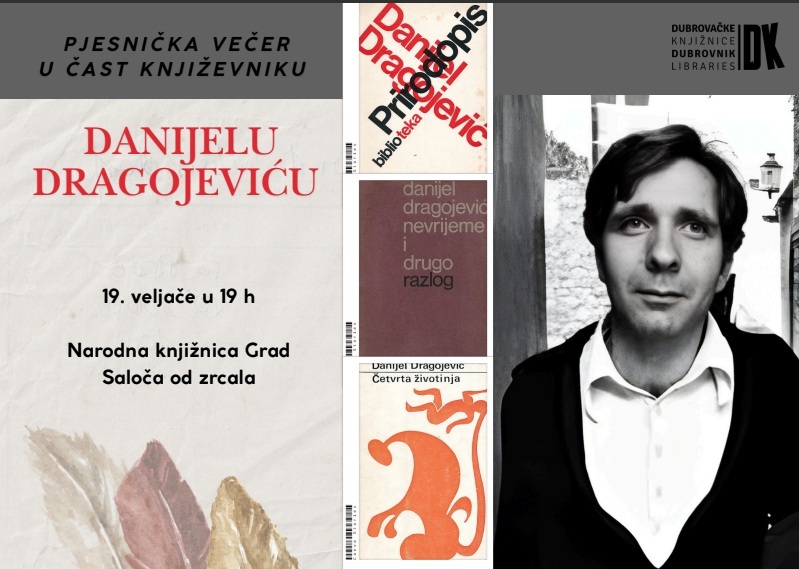 U četvrtak, 19. veljače, s početkom u 19 sati, u Saloči od zrcala Narodne knjižnice Grad održat će se pjesnička večer posvećena istaknutom hrvatskom pjesniku, esejistu i radijskom uredniku Danijelu Dragojeviću, u povodu druge obljetnice njegove smrti.