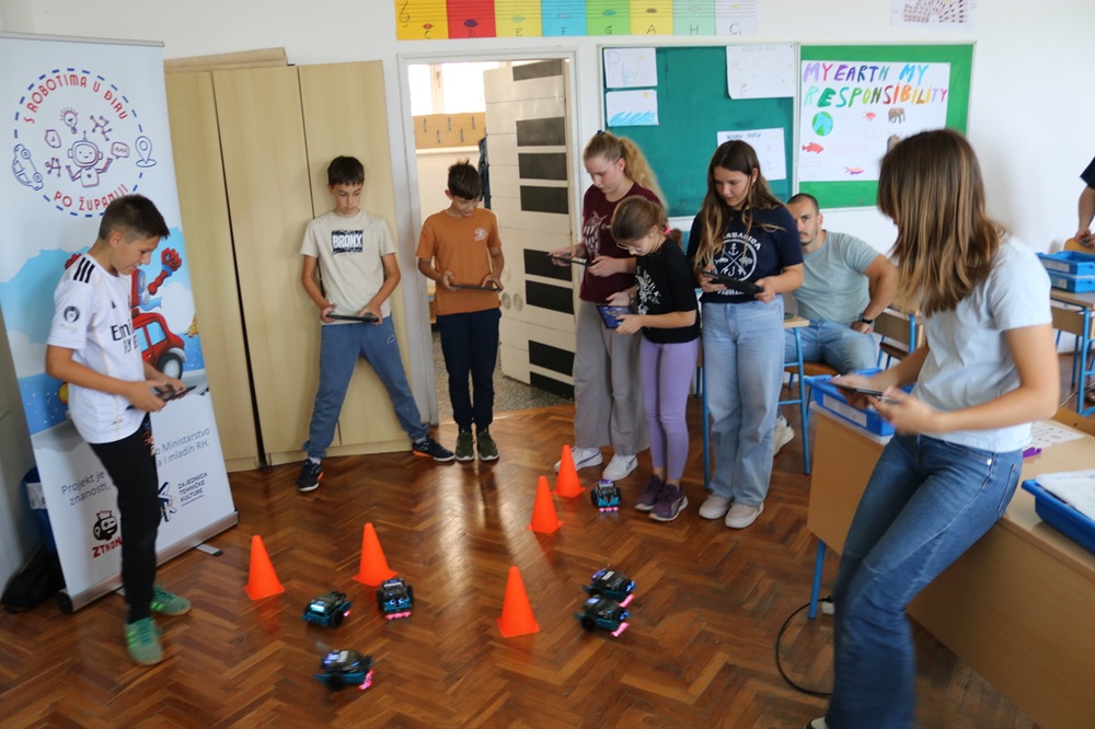 Na mBot radionicama učenici su upravljali robotima pomoću tableta izbjegavajući prepreke i rješavajući izazove. Uz to, stekli su osnovna znanja o robotima i elektroničkim komponentama te o osnovama grafičkog programiranja temeljenog na blokovima.