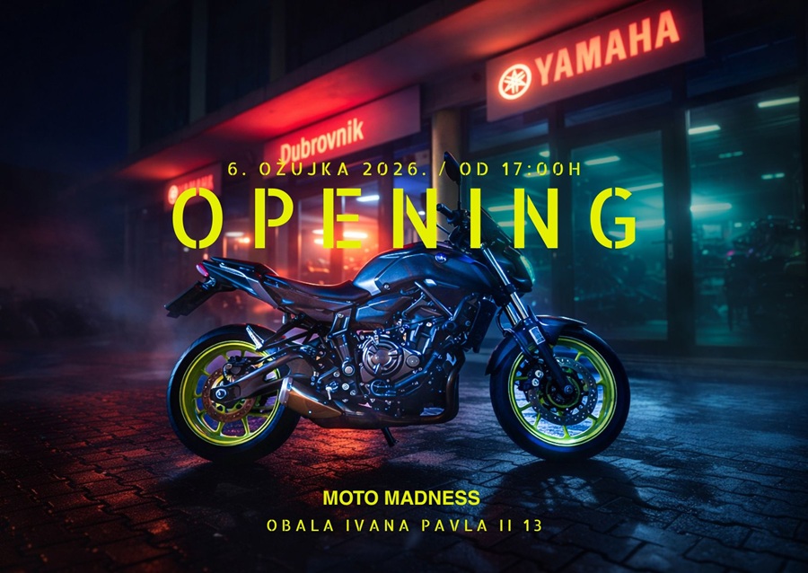 Moto Madness Dubrovnik – Official Yamaha Representative, najavljuje svečano otvorenje salona Moto Madness, novog ovlaštenog partnera tvrtke Yamaha Motor Company, koje će se održati 06.03.2026. godine. od 17h